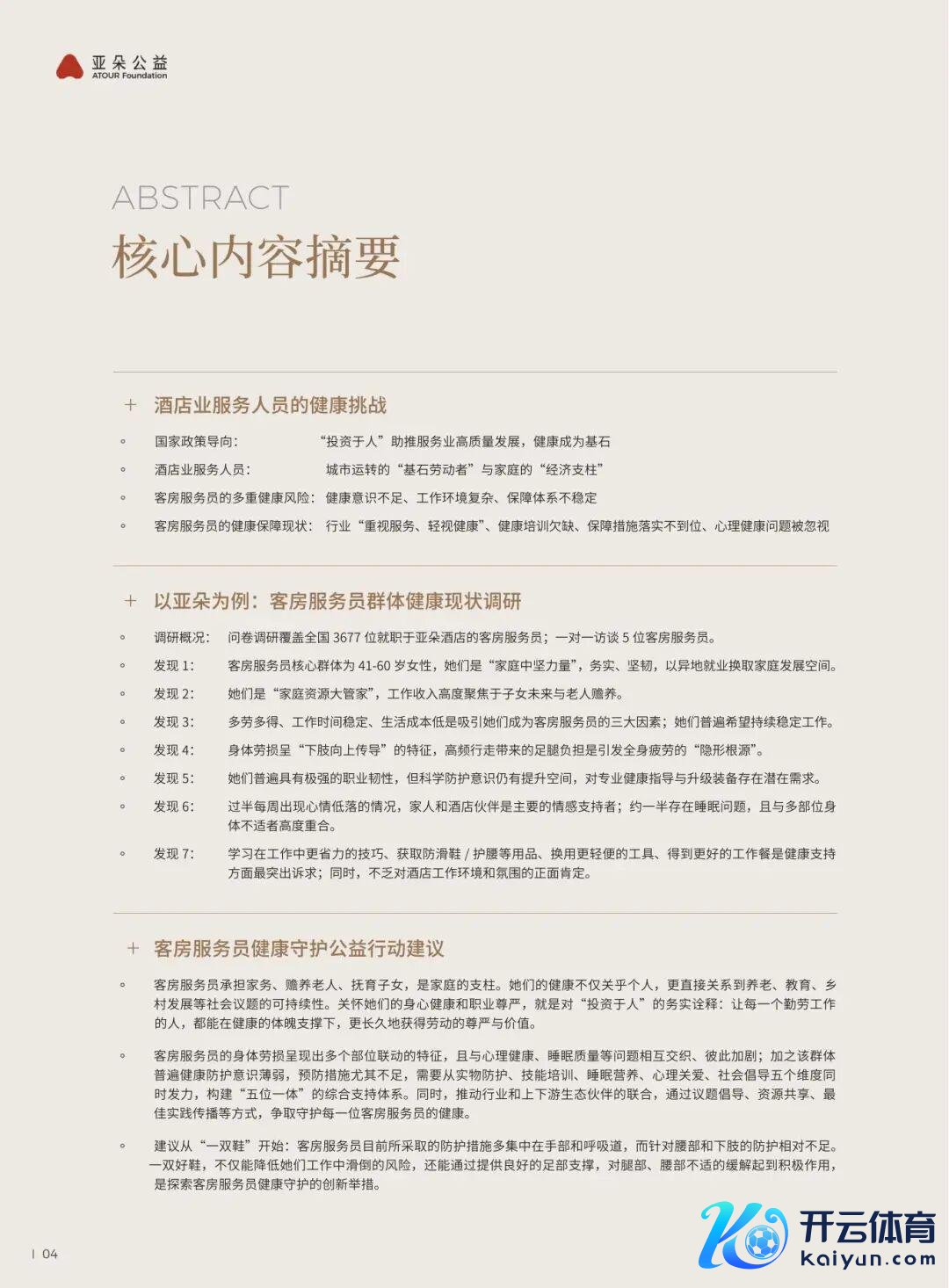 咱们更“看见”了:亚朵对“客房服务员”的诚实体贴。陈诉意见:要从什物防卫、手段培训、寝息养分、情绪关爱、社会意见五个维度同期发力,构建“五位一体”的空洞支捏体系,同期建议了“一对鞋”野心——就如同亚朵用“一个枕头”去护理住客的寝息,“一对鞋”也代表了企业对一线服务者实确凿在的护理和举止。