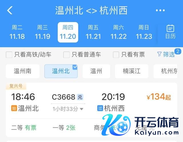 车次:C3668 温州北站—杭州西站