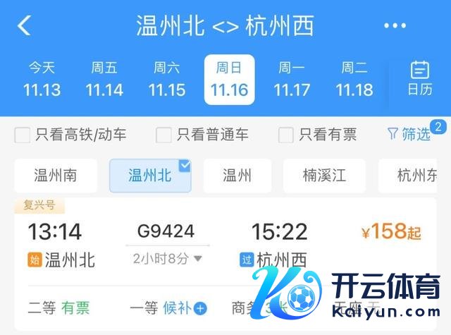 车次:G9424 温州北站—杭州西站
