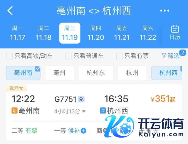 车次:G7751/4 亳州南站—杭州西站