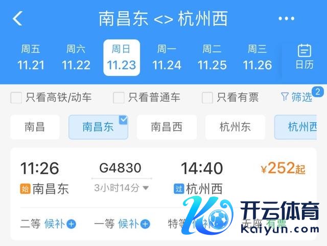 车次:G4830 南昌东站—杭州西站