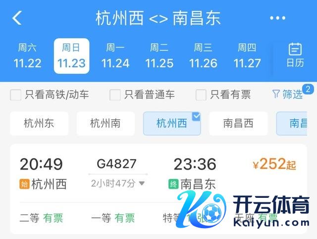 车次:G4827 杭州西站—南昌东站