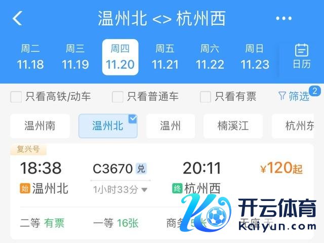 车次:C3670 温州北站—杭州西站