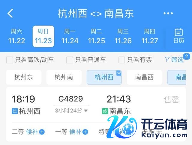 车次:G4829 杭州西站—南昌东站