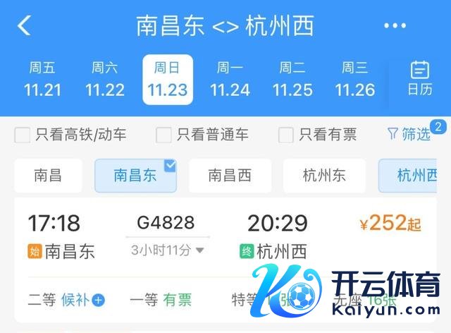 车次:G4828 南昌东站—杭州西站