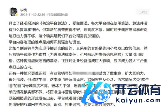 抖音副总裁谈“算法问题”:透明度与谣喙打击需加强