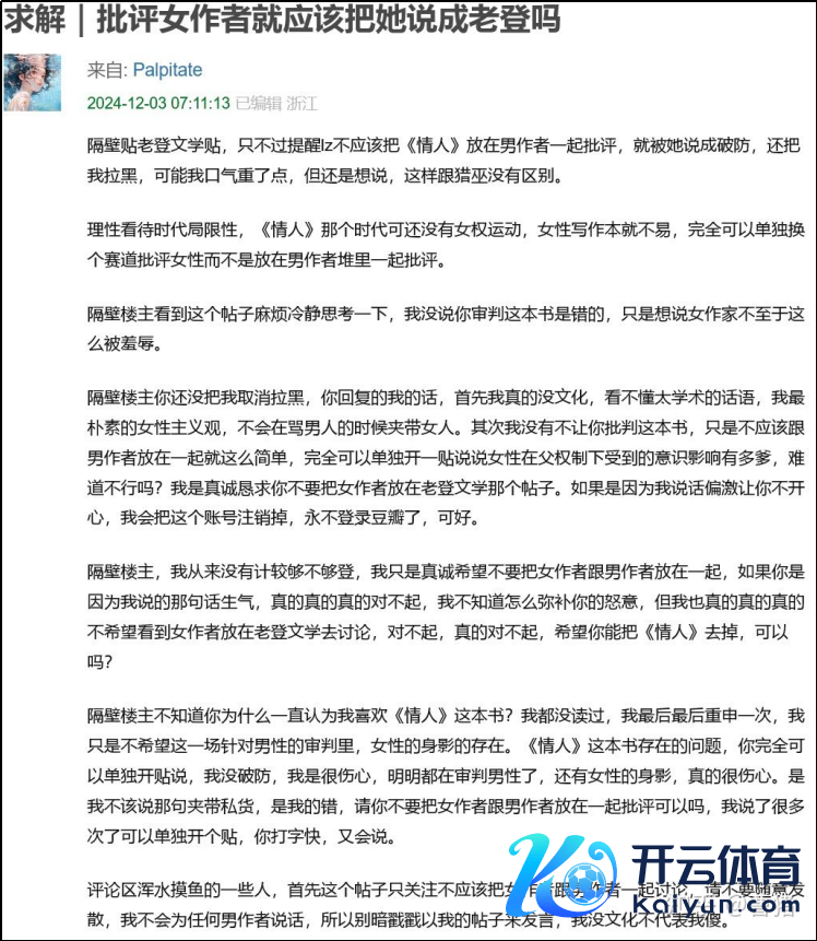 同组的东说念主发帖默示不屈,你不行把女作者跟男作者放一块品评,何况你诬蔑了这本演义,不管期间局限性胡乱挫折。
