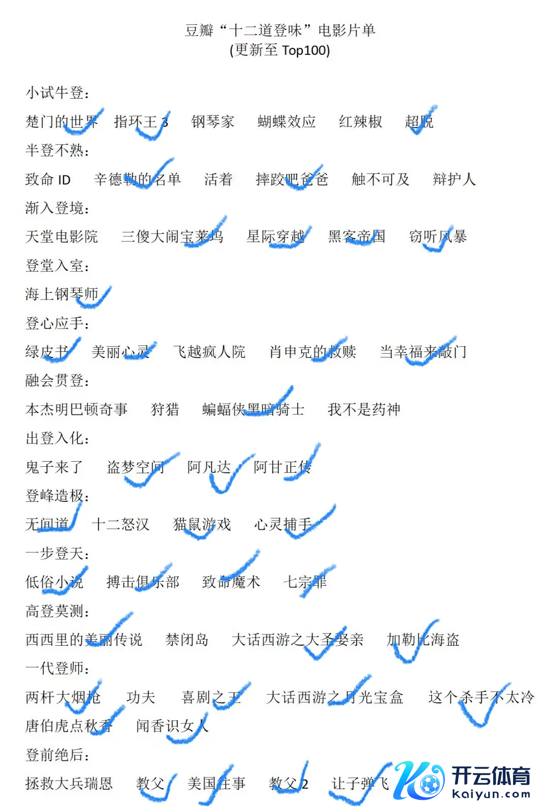 有东说念主也列了一张“十二说念登味”的片单,内部《绿皮书》《教父》《让枪弹飞》赫然在列。
