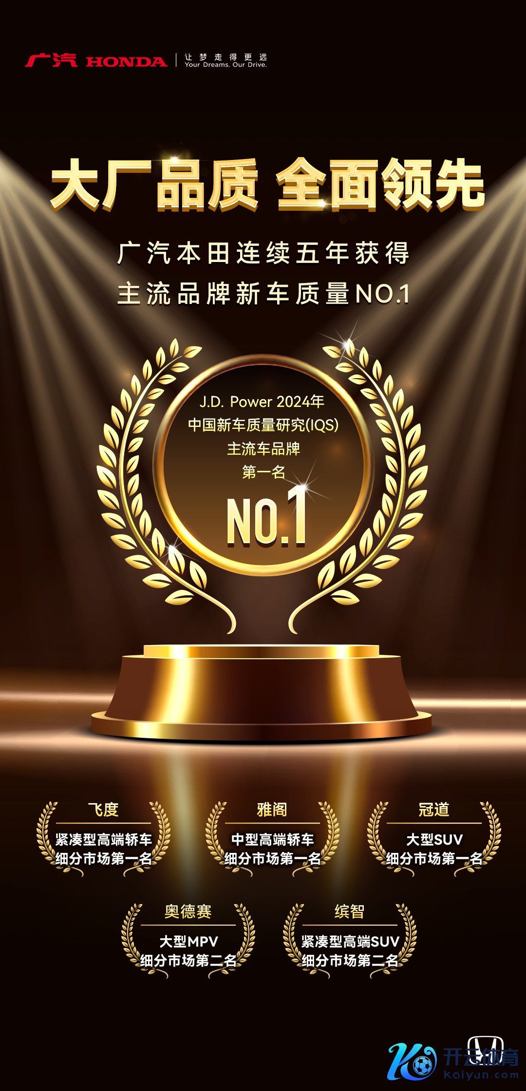 基于对高工艺水准和高品性水平的追求,广汽本田新车品性受到市集平凡认同。2020~2024年,广汽本田完了J.D. Power中国新车质料盘考SM(IQS)主流品牌新车质料五连冠,再次印证了“广试验造”的深厚底蕴,对峙为中国市集造高品性好车。