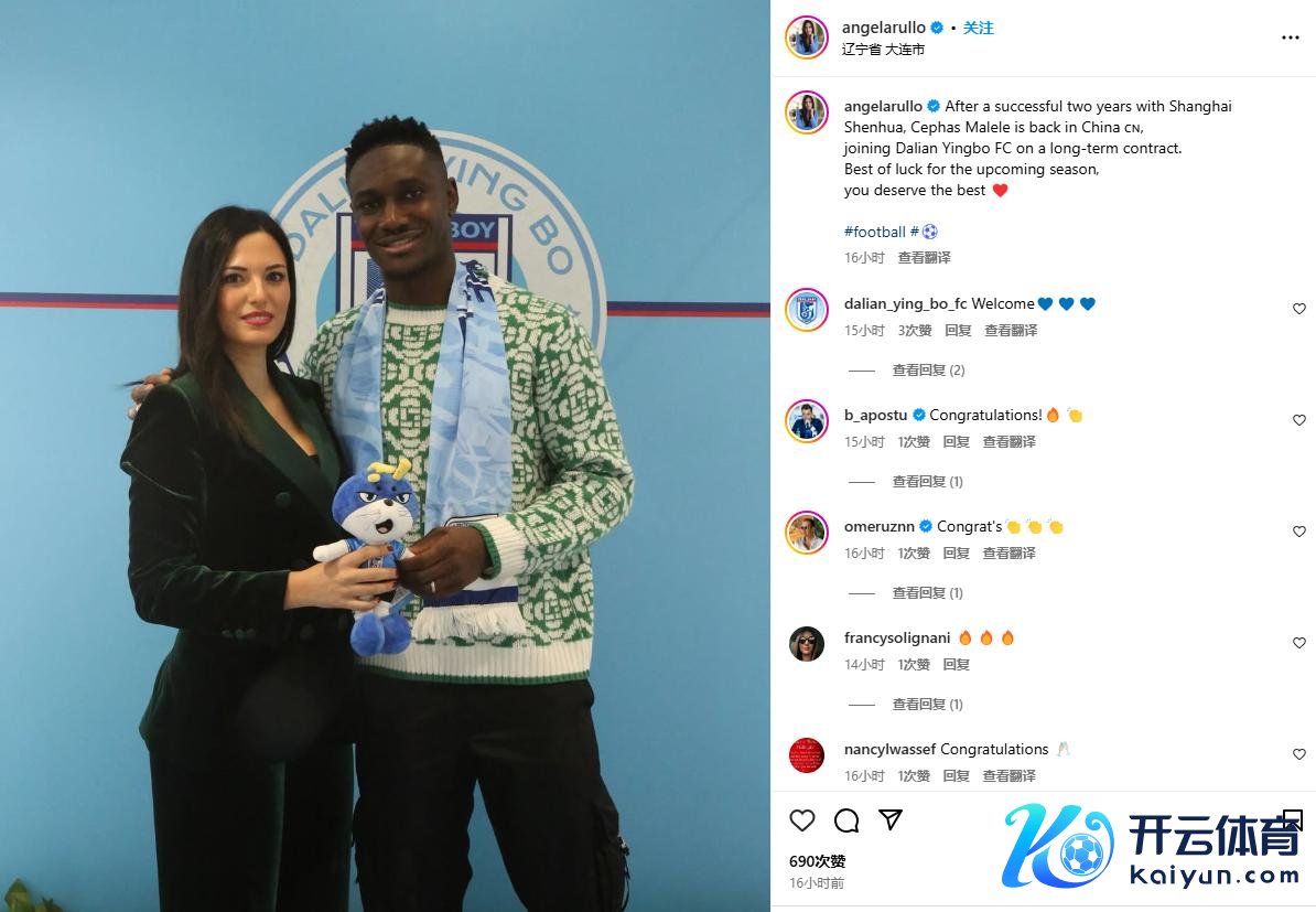 马莱莱牙东说念主Angela Rullo晒出合照写说念:在申花遵循两年后,马莱莱回到中国与大连英博缔结了一份始终条约。