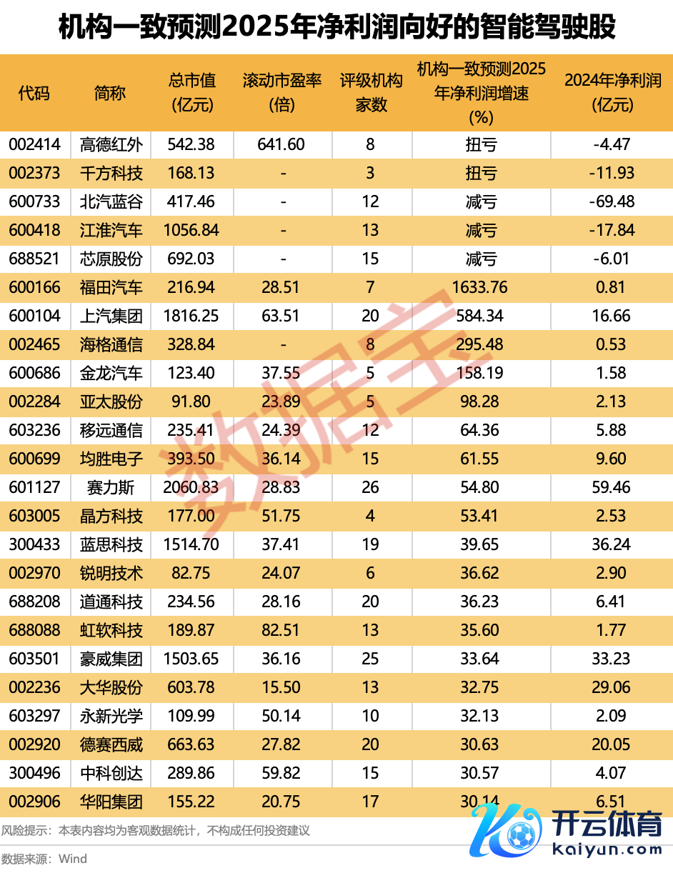 机构一致推断2025年净利润向好的智能驾驶股一览开云体育机构一致推断2025年净利润向好的智能驾驶股一览