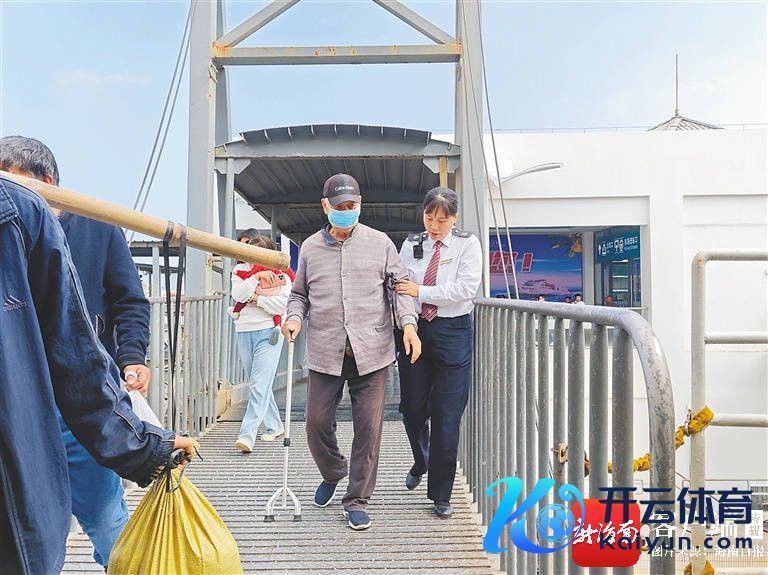 2月7日,正在值班的刘霞搀扶老东谈主登船。通信员 毛伟迪 摄